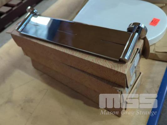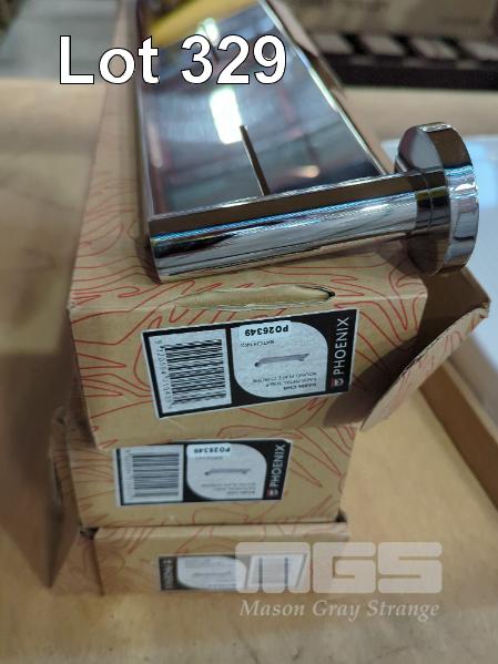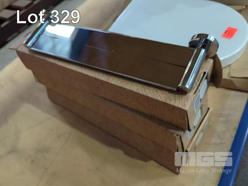 3 X PHOENIX RADII METAL SHOWER SHELVES. ROUND PLATE CHROME. ALL NEW IN BOX.