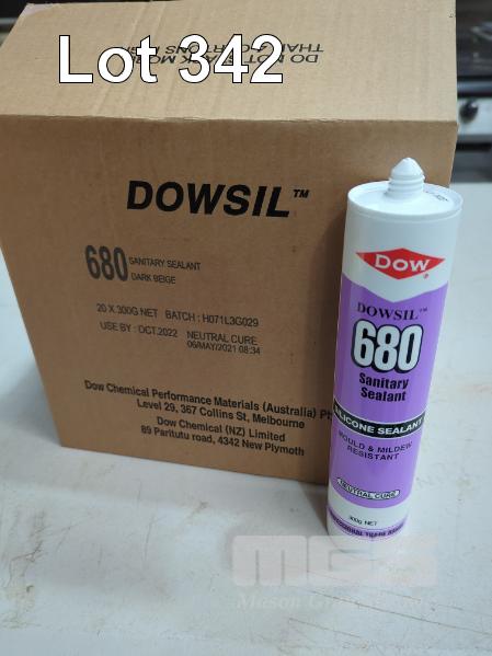 6 X CARTONS (20 UNITS EACH) OF 300 G DOWSIL 680 SANITARY SEALANT, NEUTRAL CURE. COLOUR: DARK BEIGE. USE BY: OCT.2022