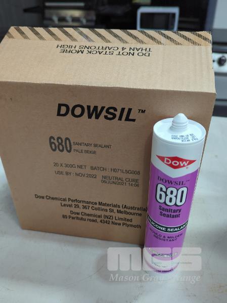 6 X CARTONS (20 UNITS EACH) OF 300 G DOWSIL 680 SANITARY SEALANT, NEUTRAL CURE. COLOUR: PALE BEIGE. USE BY: NOV.2022