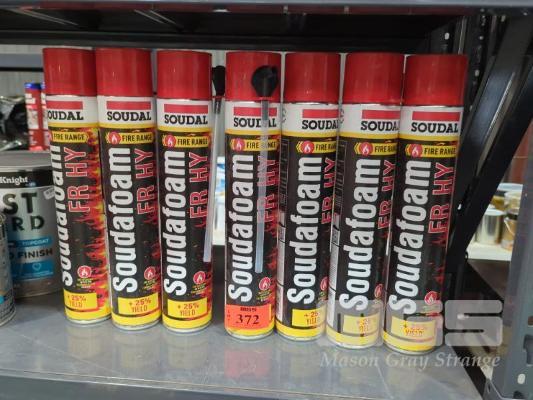7 X 750ML CANS SOUDAL SOUDAFOAM FR FY FIRE RETARDANT PU FOAM.