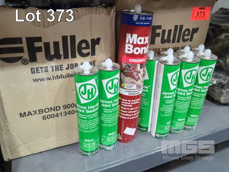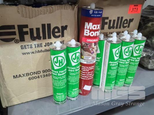 QUANTITY OF CONSTRUCTION ADHESIVES/SEALANTS COMPRISING: 24 X HB FULLER MAX BOND ORIGINAL 900G. 9 X JAMES HARDY JOINT SEALANT (305534) 300 ML.