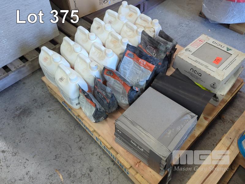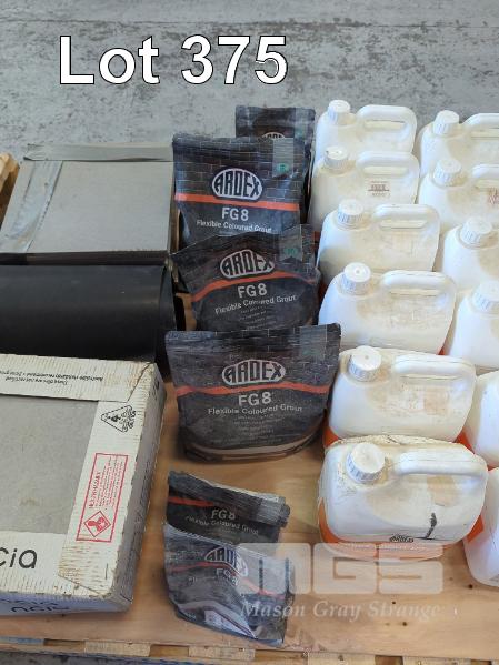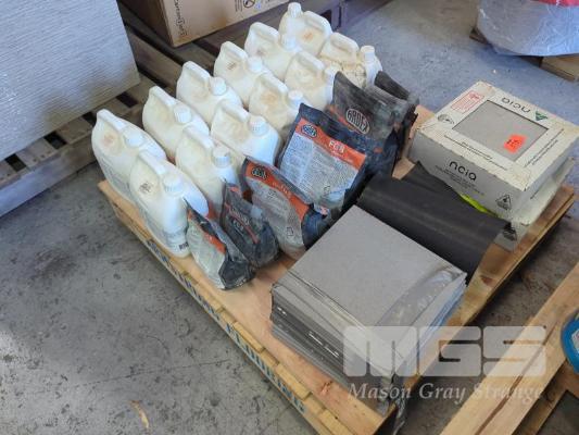 COLLECTION OF PART CONTAINERS OF BUILDERS GROUTS, TILES ETC (1 X PALLET)
