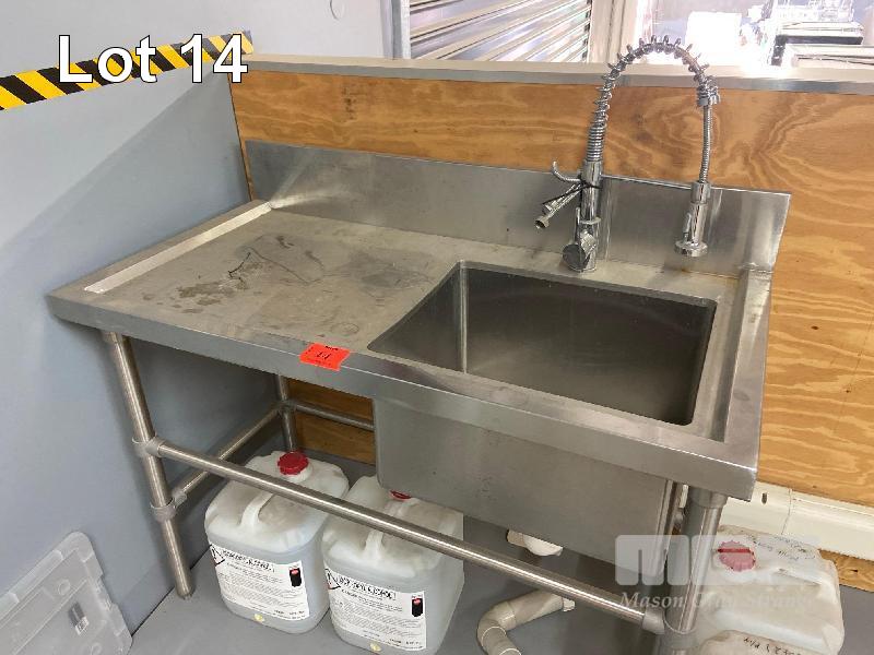 BRAYCO DEEP BOWL SINK WITH FLEXI TAP ON STAINLESS STEEL STAND 1200 x 600m WITH SPLASHBACK