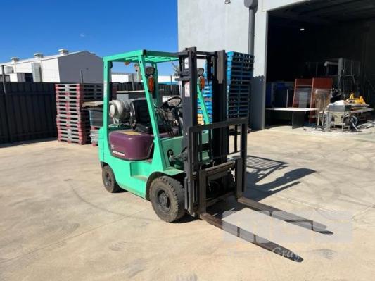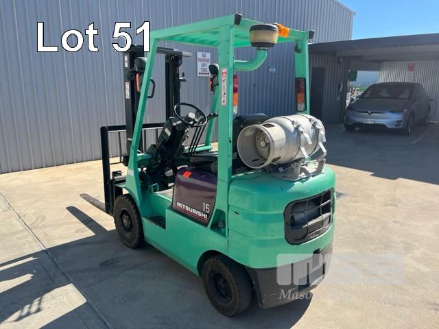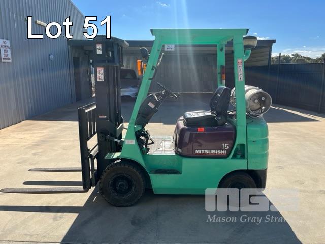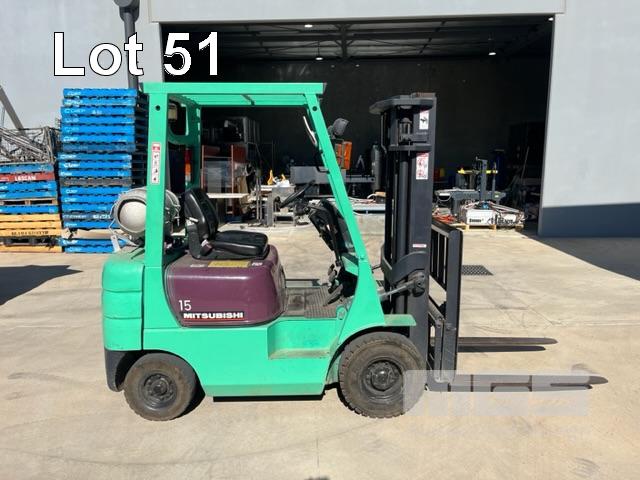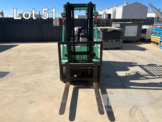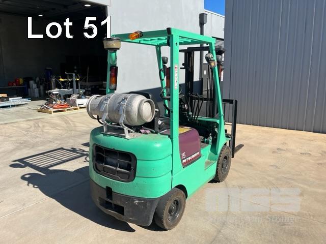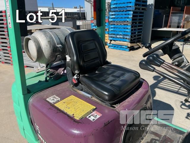 FORKLIFT, MITSUBISHI 15 MOD: FG15T LPG, LOW 2 STAGE MAST SOLID TYRES, GOOD SEAT HOURS: 11,948 SHOWING SAFETY LIGHT & BUZZER WORKING LIGHTS, AIR PRE CLEANER GAS BOTTLE NOT INCLUDED