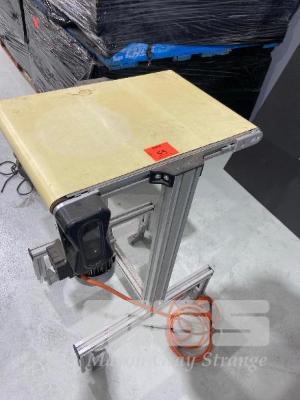 SMALL IN/OUTFEED CONVEYOR 390 (W) x 600mm (L) 415V DRIVE/GEARBOX ON ALUMINIUM STAND
