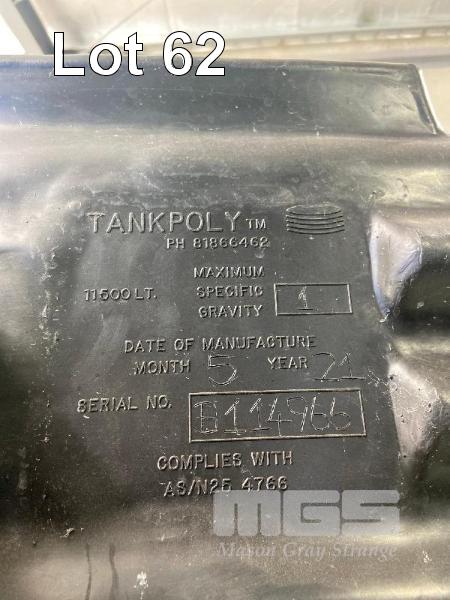 TANK POLY AUSTRALIA DOM: 5/2021 11,500 LITRE, BLACK S/NO: B114966 WITH FLOAT LEVEL