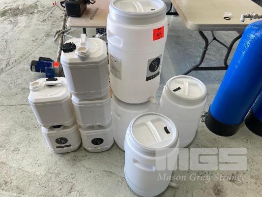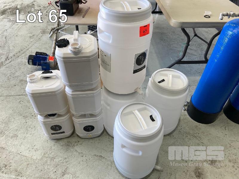 9 x WATER DRUMS, WHITE, 4 @ 30 LITRE & 5 @ 10 LITRE