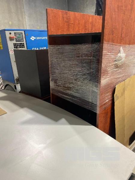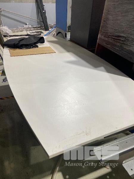 LARGE MEETING TABLE,WHITE LAMINATE, 2 x LAMINATE DESKS & RETURNS & 4 DRAWER FILING CABINET