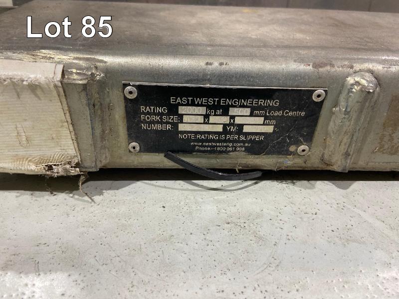 PAIR FORKLIFT EXTENSIONS, EAST WEST ENGINEERING 2000kg RATED DOM: 2020 130 x 50 x 1068mm WITH PINS