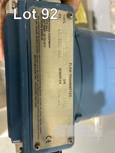 MICRO MOTION/FLOW METER MOD: R100SI138M S/NO: 708165 FLOW TRANSMITTER MOD: 1FT97031C6DIM