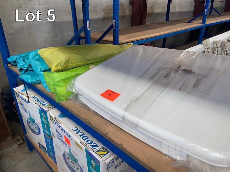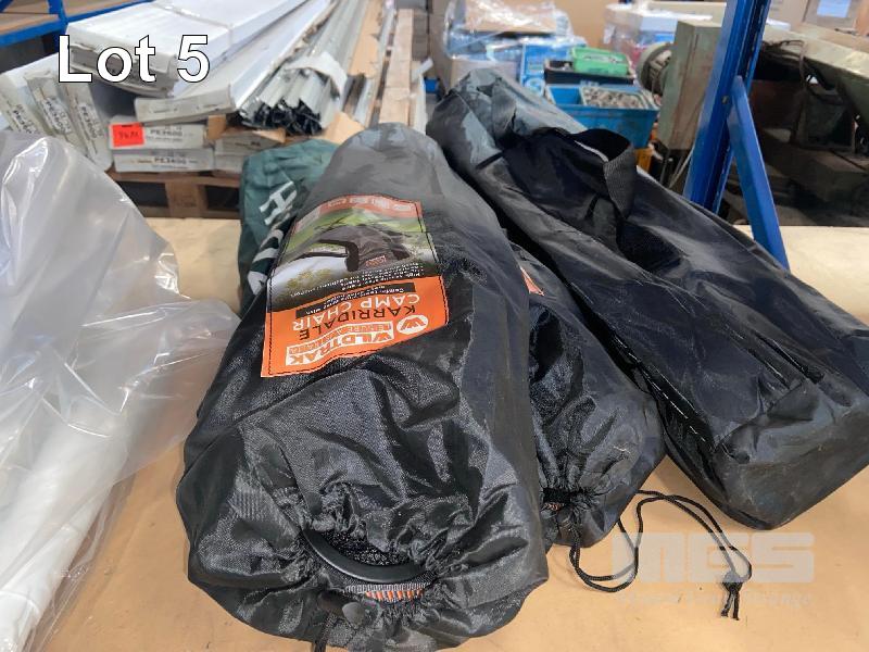 8 x ASSORTED BEACH TENTS, 2 x PLASTIC TABLES & 5 x WILDTIME FOLDING CAMP CHAIRS