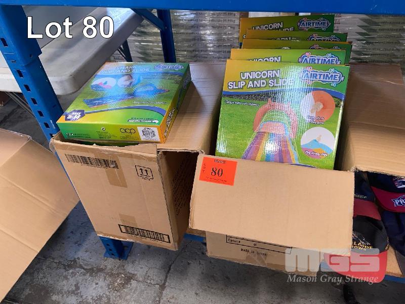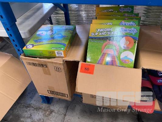 16 x INFLATABLE KIDS SLIP & SLIDES, UNICORN & SHARK