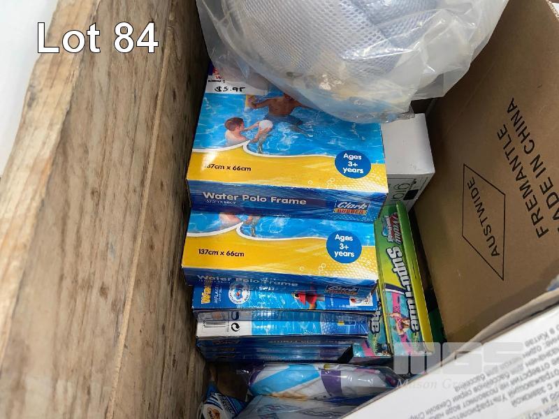ASSORTED KIDS POOL TOYS, INCLUDING, INFLATABLES, SPONGES, COVERS, ETC 1 x CRATE