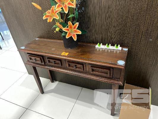 4 DRAWER SIDEBOARD, TIMBER, WITH GLASS TOP, 1200 x 300mm