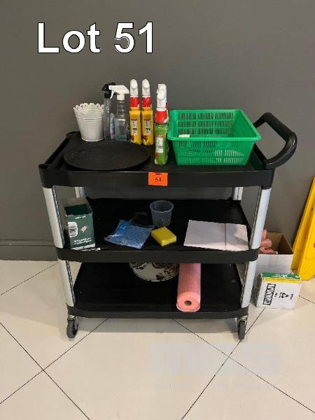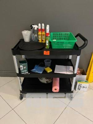3 TIER CLEANERS TROLLEY, PVC, 2 x WET FLOOR SIGNS