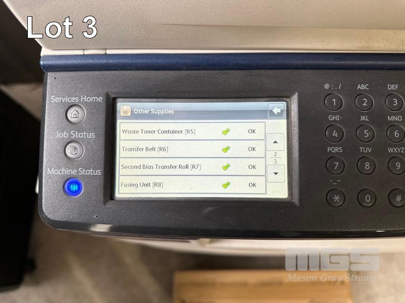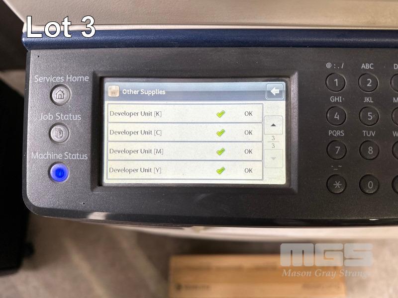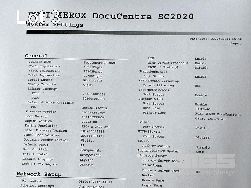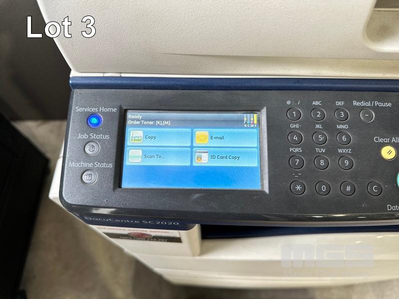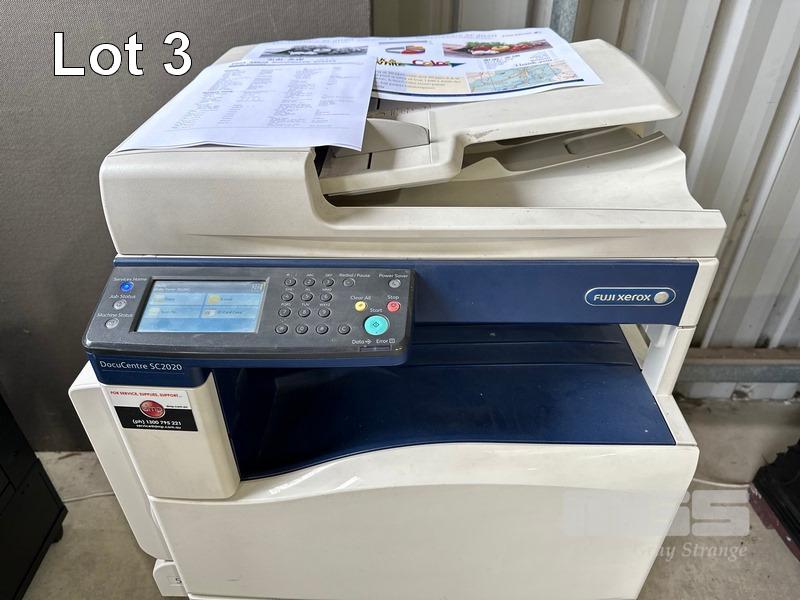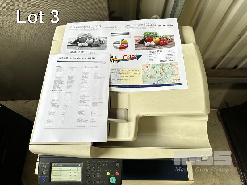 PRINTER, FUJI XEROX DOCUCENTRE SC2020 MFC COLOUR LASER ON MOBILE CABINET, 49,333 COLOUR & 16,402 B&W PAGES (TEST PAGE ATTACHED) WITH SPARE DRUM CARTRIDGE (MESSAGE ORDER TONER [K], [M]) S/N:BU4194363