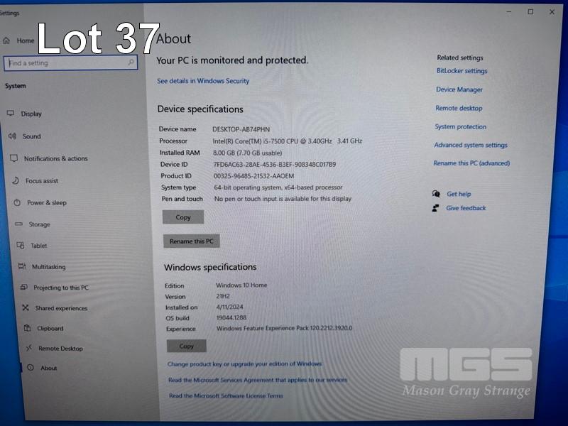 ALL-IN-ONE PC, DELL OPTIPLEX 7450, CORE i5 7500 (7TH GEN) @ 3.4GHz, 8GB DDR4 RAM, 512GB SSD, INBUILT 23.8" FHD WIDESCREEN (1920x1080), INTEL HD VIDEO, WEBCAM, 7 x USB, 1 x USB-C, WINDOWS 10 HOME INSTALLED, KEYBOARD & MOUSE S/N:FSYCBS2