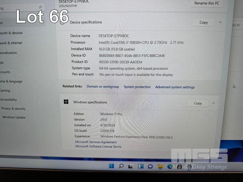 LAPTOP, LENOVO THINKPAD P15 GEN 1 MOBILE WORKSTATION, TYPE 20SU, CORE i7 10850H (10TH GEN) @ 2.7GHz, 16GB DDR4 RAM, 512GB NVMe M.2 SSD, 15.6" WIDESCREEN (1920x1080), 4GB NVIDIA QUADRO T2000 VIDEO, Wi-Fi, BLUETOOTH, WINDOWS 11 PRO INSTALLED & POWER SUPPLY (NOTE: MINOR MARKS ON SCREEN) S/N:PF1SL9HG