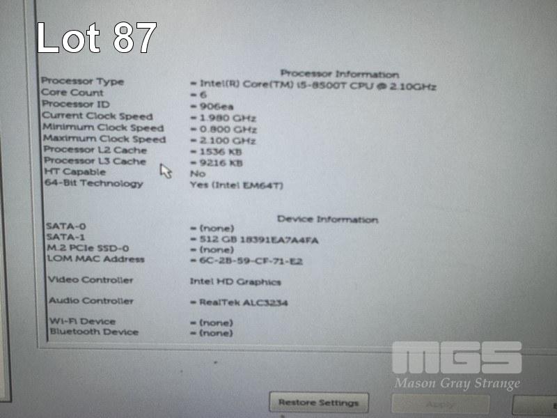 DESKTOP PC, DELL OPTIPLEX 3060 MICRO, CORE i5 8500T (8TH GEN) @ 2.1GHz, 8GB DDR4 RAM, 512GB M.2 SSD, INTEL HD VIDEO, 6 x USB, WINDOWS 11 HOME INSTALLED & POWER SUPPLY (65W) (NO KEYBOARD, NO MOUSE) S/N:DKPF9V2