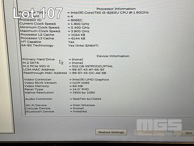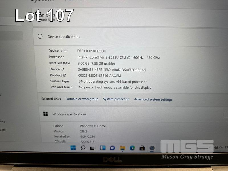 LAPTOP, DELL LATITUDE 5400, CORE i5 8265U (8TH GEN) @ 1.6GHz, 8GB DDR4 RAM, 512GB NVMe M.2 SSD, 14" WIDESCREEN (1920x1080), INTEL UHD GRAPHICS 620, Wi-Fi, BLUETOOTH, WINDOWS 11 HOME INSTALLED & POWER SUPPLY (NOTE: MARKS ON SCREEN) S/N:82C6ZY2