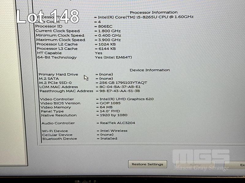 LAPTOP, DELL LATITUDE 5400, CORE i5 8265U (8TH GEN) @ 1.6GHz, 16GB DDR4 RAM, 256GB NVMe M.2 SSD, 14" WIDESCREEN (1920x1080), INTEL UHD GRAPHICS 620, Wi-Fi, BLUETOOTH, WINDOWS 11 HOME INSTALLED & POWER SUPPLY S/N:8L7N0Z2