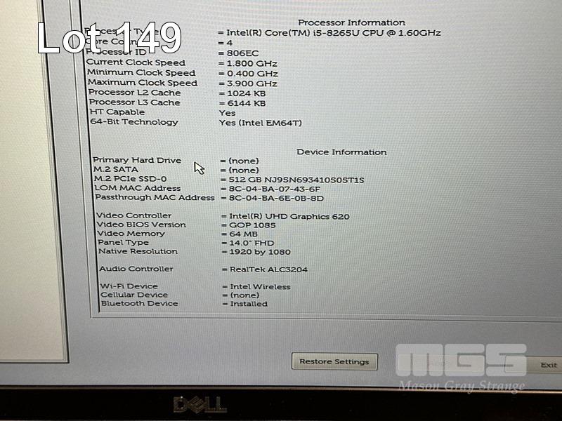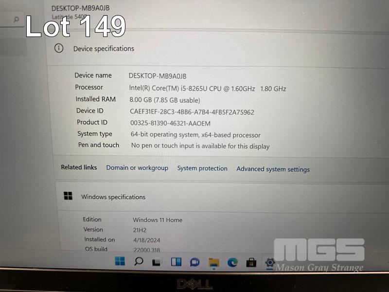 LAPTOP, DELL LATITUDE 5400, CORE i5 8265U (8TH GEN) @ 1.6GHz, 8GB DDR4 RAM, 512GB NVMe M.2 SSD, 14" WIDESCREEN (1920x1080), INTEL UHD GRAPHICS 620, Wi-Fi, BLUETOOTH, WINDOWS 11 HOME INSTALLED & POWER SUPPLY (NOTE: MARKS ON SCREEN) S/N:JX3H1X2