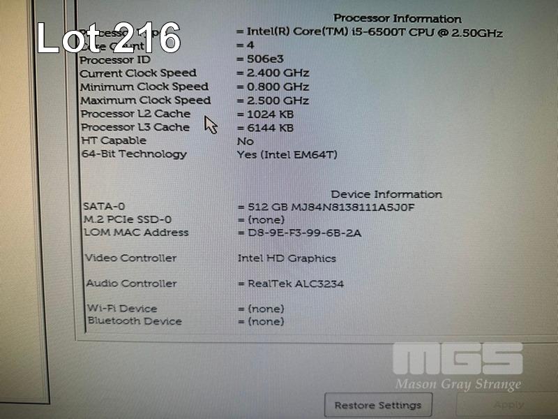 DESKTOP PC, DELL OPTIPLEX 3050 MICRO, CORE i5 6500T (6TH GEN) @ 2.5GHz, 8GB DDR4 RAM, 512GB SSD, INTEL HD VIDEO, 6 x USB, WINDOWS 10 HOME INSTALLED (NO POWER SUPPLY, NO KEYBOARD, NO MOUSE) S/N:FKXM6Q2