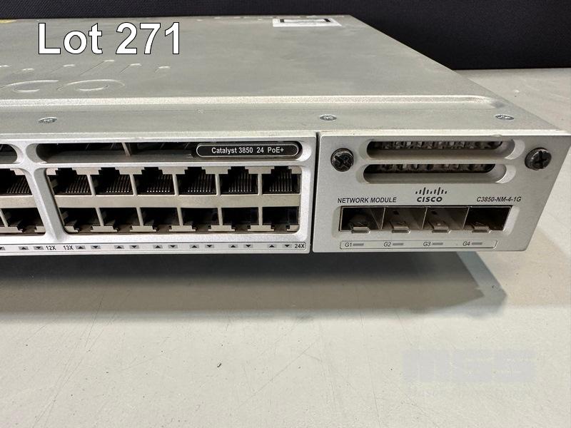 CISCO CATALYST 3850 24 PoE+ 24-PORT SWITCH, WS-C3850-24P-S V02 C3850-NM-4-1G NETWORK MODULE, 2 x PWR-C1-715WAC PSU (NO CABLES) S/N:FOC1747X0EZ
