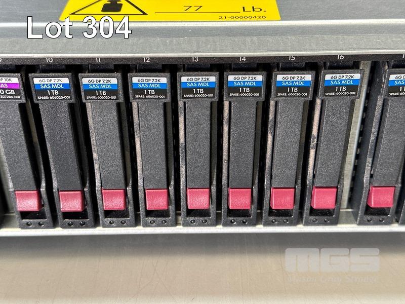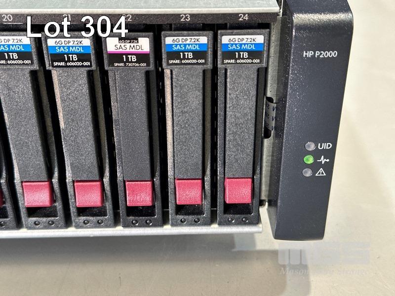 RACKMOUNT STORAGE ARRAY, HP P2000, AP846B, 2U, 15 x 1TB SAS HDD, 9 x 300GB SAS HDD, 2 x AP836B CONTROLLERS, 2 x PSU WITH RAILS (NO CABLES) S/N:2S6311B091