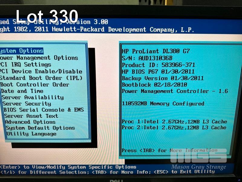 RACKMOUNT SERVER, HP PROLIANT DL380 G7, 2U, 2 x XEON X5650 @ 2.67GHz, 108GB ECC DDR3 RAM, 14 x 300GB SAS HDD, 2 x 146GB SAS HDD, SAS CONTROLLER CARD, 2 x 750W PSU WITH RAILS (NO CABLES) S/N:AUD131036B
