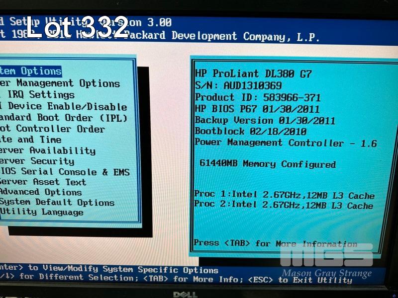 RACKMOUNT SERVER, HP PROLIANT DL380 G7, 2U, 2 x XEON X5650 @ 2.67GHz, 60GB ECC DDR3 RAM, 14 x 300GB SAS HDD, 2 x 146GB SAS HDD, SAS CONTROLLER CARD, 2 x 750W PSU WITH RAILS (NO CABLES) S/N:AUD1310369
