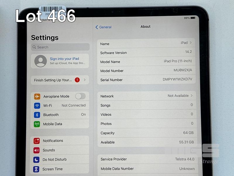 APPLE iPAD PRO, 11", 64GB, Wi-Fi, CELLULAR, SPACE GREY, MODEL MU0M2X/A, A1934 WITH DUX PLUS CASE (NO CABLE, NO CHARGER) S/N:DMPYW1WZKD7V