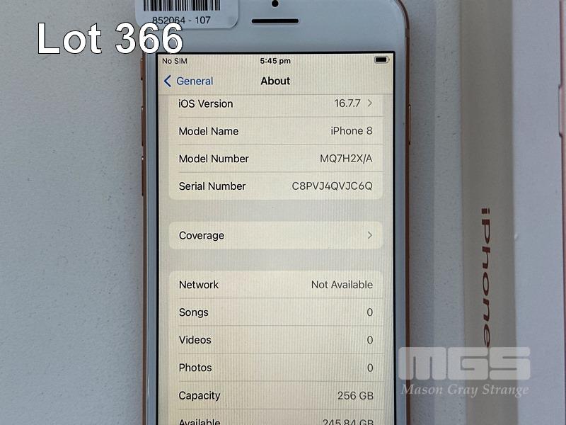 APPLE iPHONE 8, 256GB, GOLD, MODEL MQ7H2X/A, BATTERY HEALTH 91% (NO CABLE, NO CHARGER) S/N:C8PVJ4QVJC6Q
