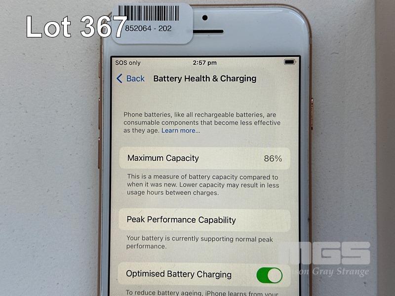 APPLE iPHONE 8, 256GB, GOLD, MODEL NQ7H2ZP/A, BATTERY HEALTH 86% (NO CABLE, NO CHARGER) S/N:C7CVHMVMJC6Q