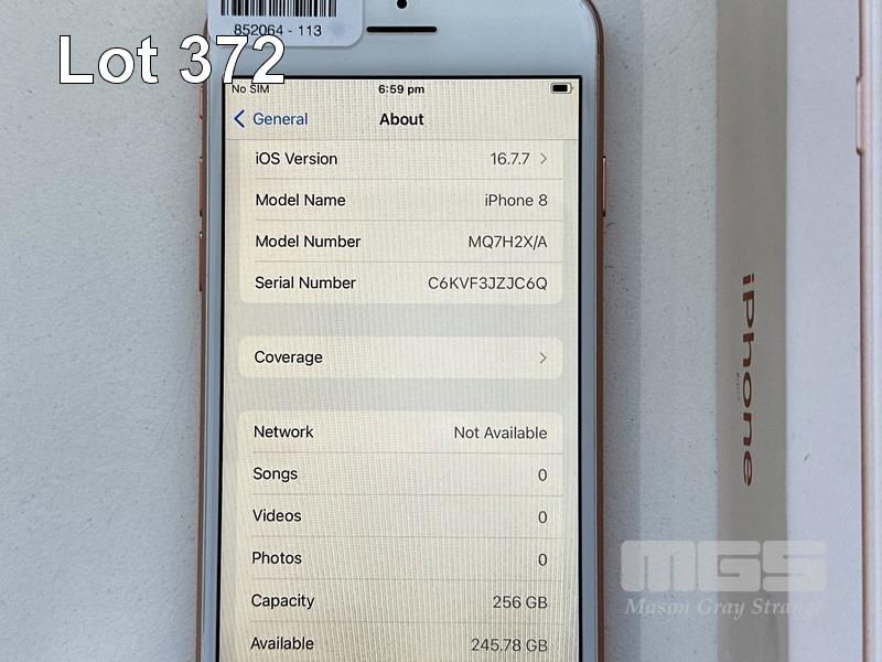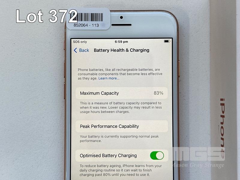 APPLE iPHONE 8, 256GB, GOLD, MODEL MQ7H2X/A, BATTERY HEALTH 83% (NO CABLE, NO CHARGER) S/N:C6KVF3JZJC6Q