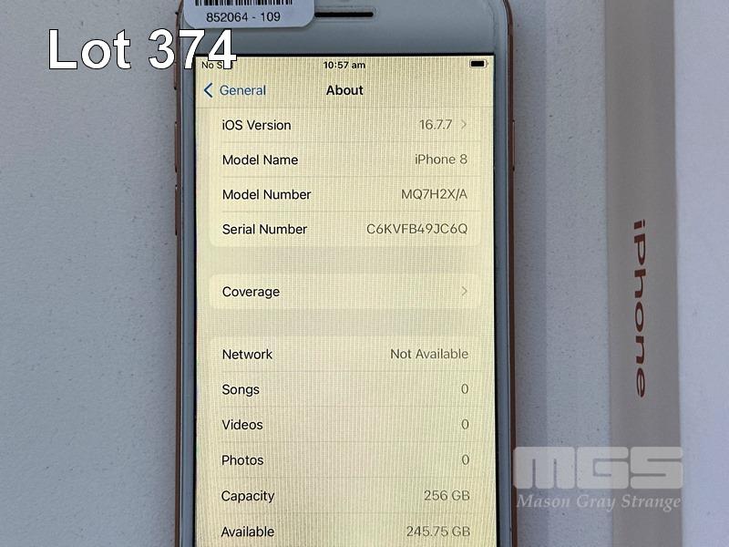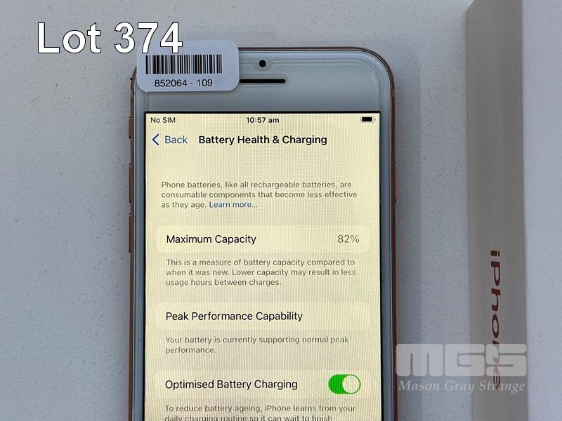 APPLE iPHONE 8, 256GB, GOLD, MODEL MQ7H2X/A, BATTERY HEALTH 82% (NO CABLE, NO CHARGER) S/N:C6KVFB49JC6Q