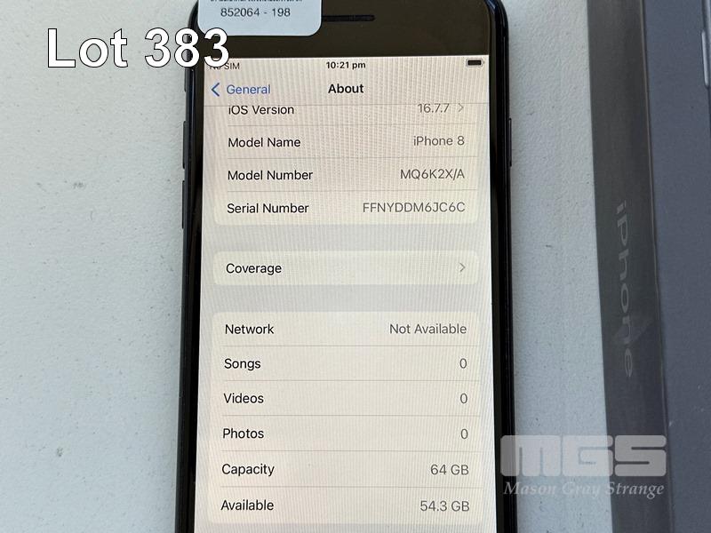 APPLE iPHONE 8, 64GB, SPACE GREY, MODEL MQ6K2X/A, BATTERY HEALTH 98% (NO CABLE, NO CHARGER) (NOTE: MINOR DAMAGE) S/N:FFNYDDM6JC6C