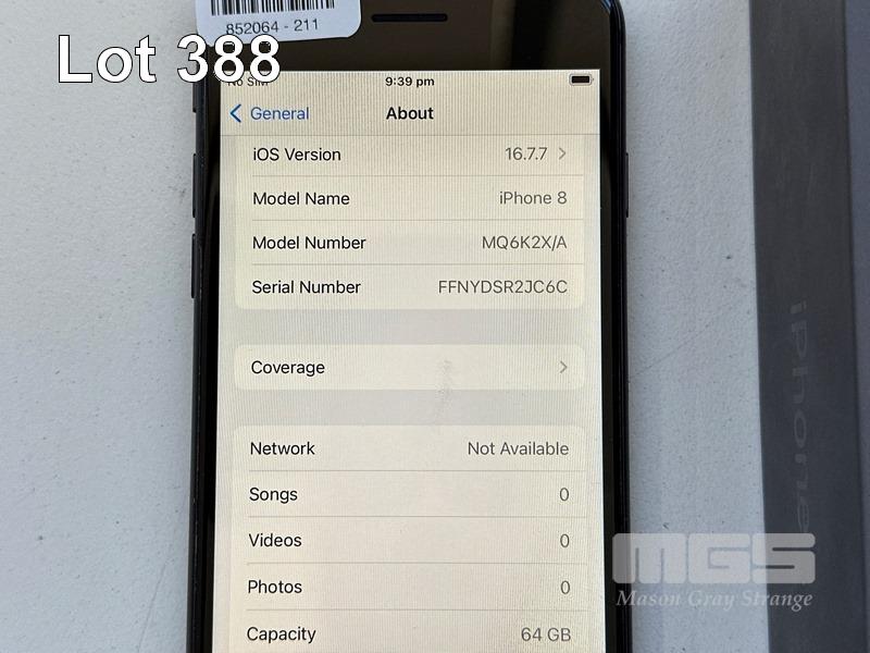 APPLE iPHONE 8, 64GB, SPACE GREY, MODEL MQ6K2X/A, BATTERY HEALTH 95% (NO CABLE, NO CHARGER) S/N:FFNYDSR2JC6C