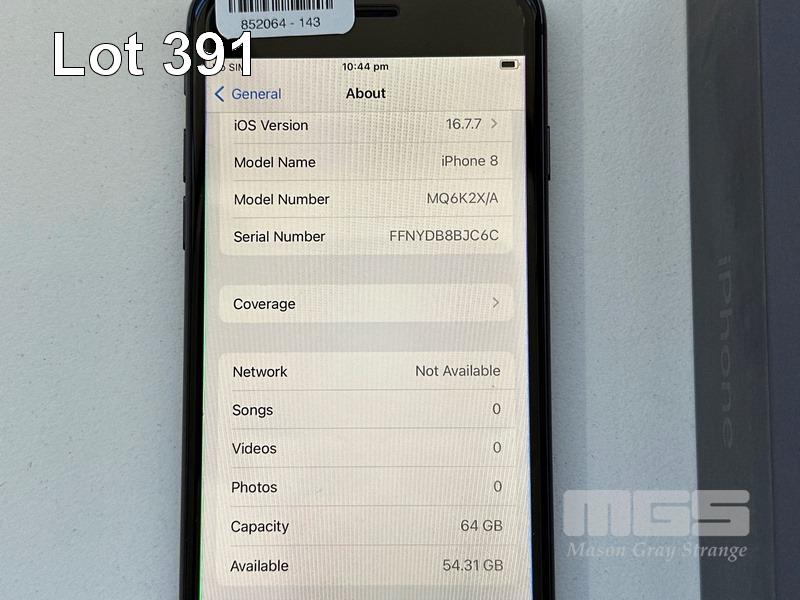 APPLE iPHONE 8, 64GB, SPACE GREY, MODEL MQ6K2X/A, BATTERY HEALTH 95% (NO CABLE, NO CHARGER) S/N:FFNYDB8BJC6C