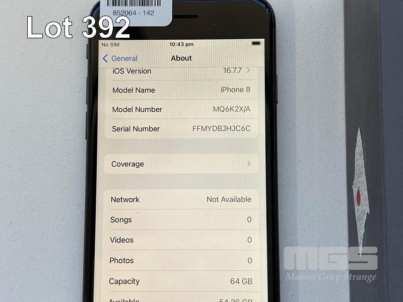 APPLE iPHONE 8, 64GB, SPACE GREY, MODEL MQ6K2X/A, BATTERY HEALTH 95% (NO CABLE, NO CHARGER) S/N:FFMYDBJHJC6C