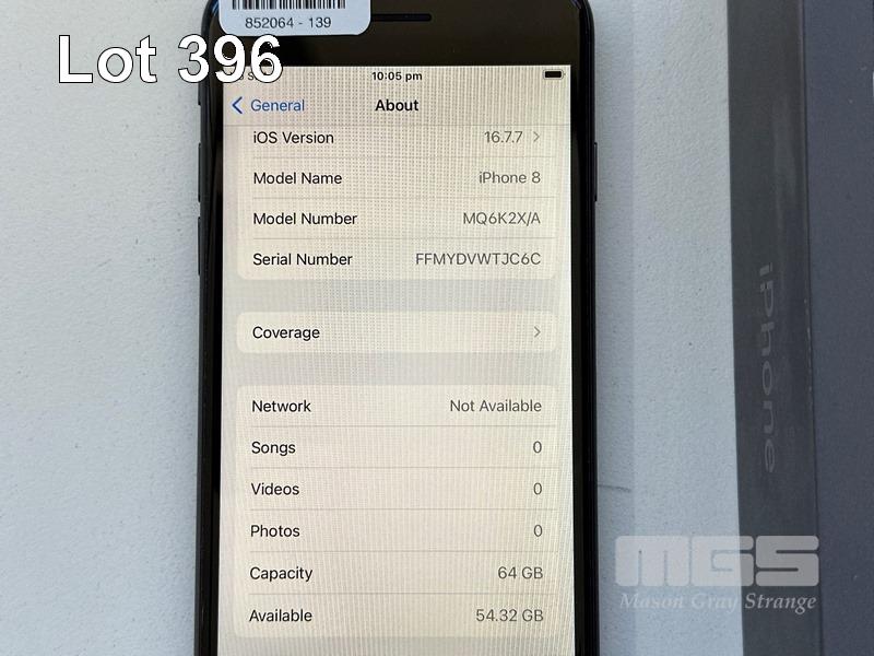 APPLE iPHONE 8, 64GB, SPACE GREY, MODEL MQ6K2X/A, BATTERY HEALTH 93% (NO CABLE, NO CHARGER) S/N:FFMYDVWTJC6C