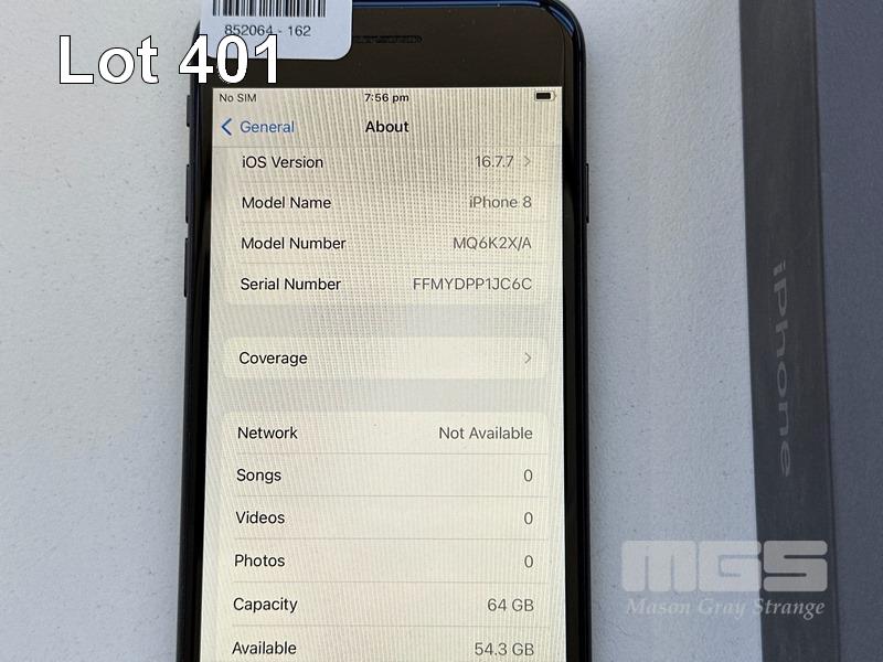 APPLE iPHONE 8, 64GB, SPACE GREY, MODEL MQ6K2X/A, BATTERY HEALTH 91% (NO CABLE, NO CHARGER) S/N:FFMYDPP1JC6C