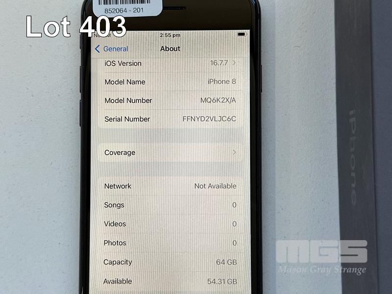APPLE iPHONE 8, 64GB, SPACE GREY, MODEL MQ6K2X/A, BATTERY HEALTH 90% (NO CABLE, NO CHARGER) S/N:FFNYD2VLJC6C