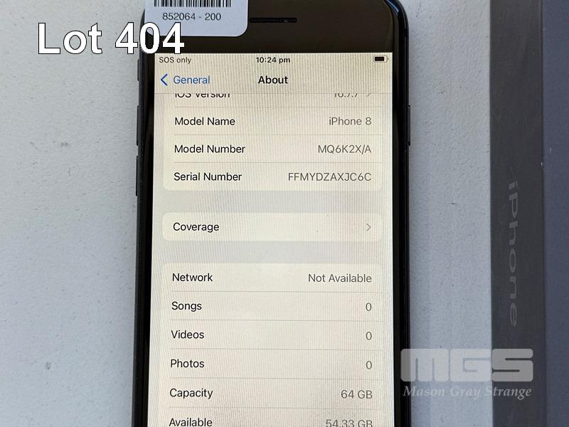 APPLE iPHONE 8, 64GB, SPACE GREY, MODEL MQ6K2X/A, BATTERY HEALTH 90% (NO CABLE, NO CHARGER) S/N:FFMYDZAXJC6C