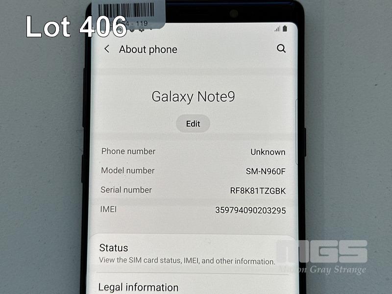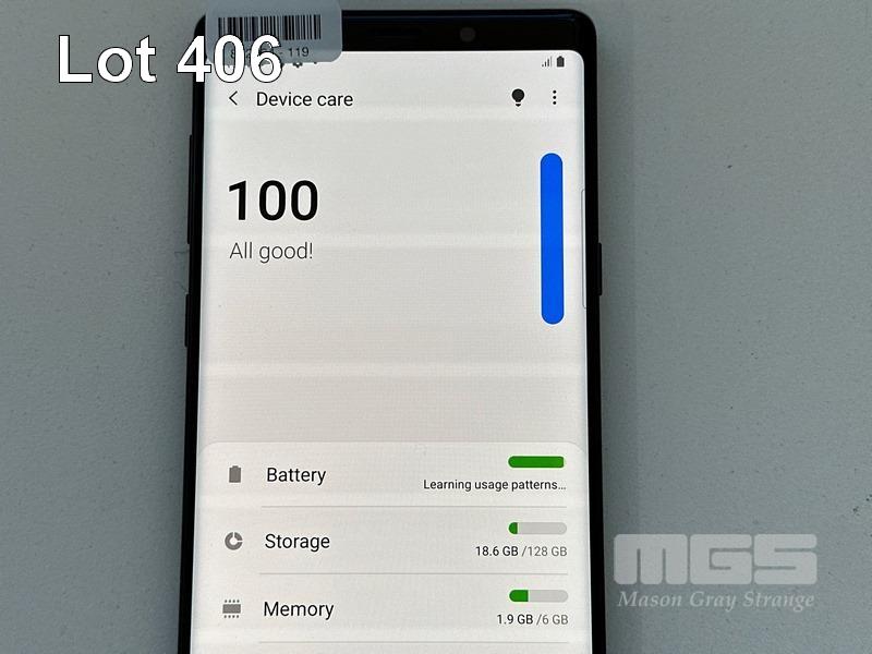SAMSUNG GALAXY NOTE9 SMARTPHONE, 128GB, BLACK, MODEL SM-N960F (NO USB-C CABLE, NO CHARGER) S/N:RF8K81TZGBK
