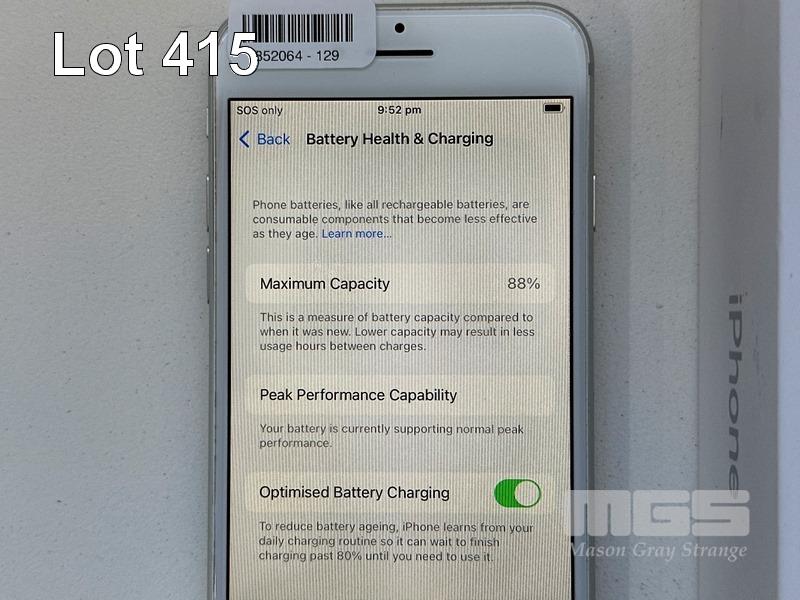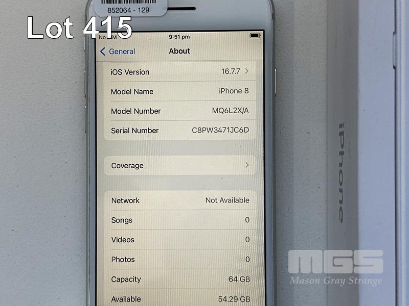 APPLE iPHONE 8, 64GB, SILVER, MODEL MQ6L2X/A, BATTERY HEALTH 88% (NO CABLE, NO CHARGER) S/N:C8PW3471JC6D