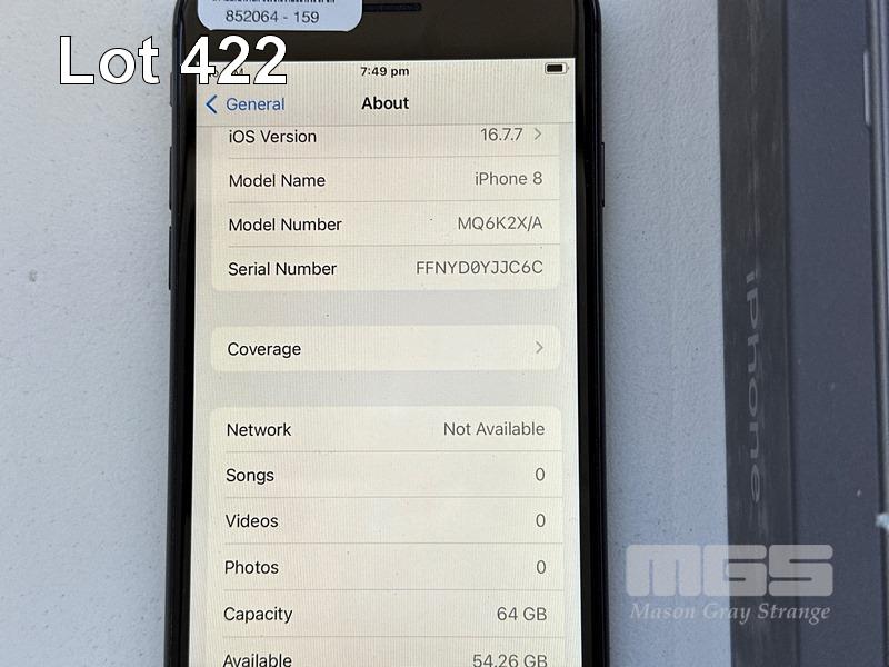 APPLE iPHONE 8, 64GB, SPACE GREY, MODEL MQ6K2X/A, BATTERY HEALTH 89% (NO CABLE, NO CHARGER) S/N:FFNYD0YJJC6C