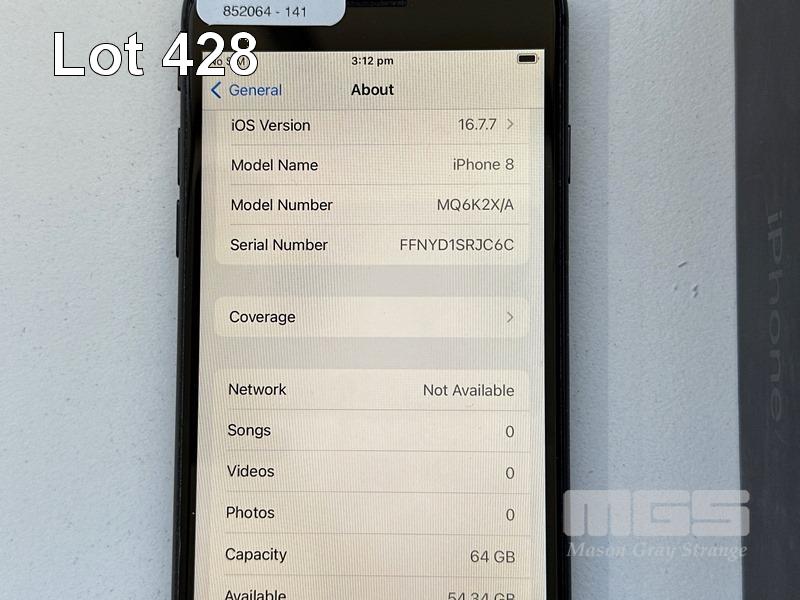 APPLE iPHONE 8, 64GB, SPACE GREY, MODEL MQ6K2X/A, BATTERY HEALTH 88% (NO CABLE, NO CHARGER) S/N:FFNYD1SRJC6C