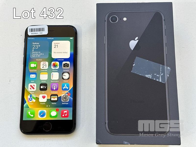 APPLE iPHONE 8, 64GB, SPACE GREY, MODEL MQ6K2X/A, BATTERY HEALTH 87% (NO CABLE, NO CHARGER) S/N:FFMYDRQPJC6C