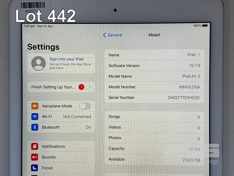 APPLE iPAD AIR 2, 32GB, Wi-Fi, SILVER, MODEL MNV62X/A, A1566 (NO CABLE, NO CHARGER) S/N:DMQT7159HG5F